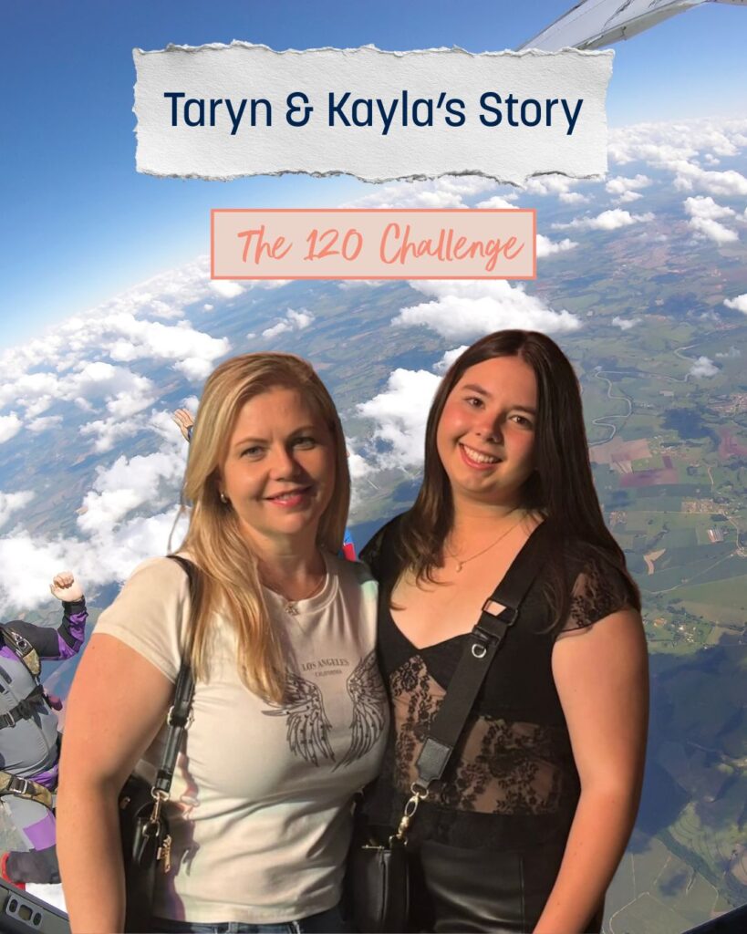 Taryn and her daughter Kayla have formed a team called the Endo Drop Squad to take on the 120 Challenge in one of the boldest ways possible, a 12,000-foot skydive over Taupō.